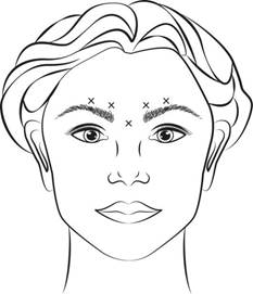 Inject 4 Units/0.1 mL of reconstituted BOTOX Cosmetic intramuscularly into each of 5 sites, 2 in each corrugator muscle and 1 in the procerus muscle for a total dose of 20 Units (see Figure 1). Typically the initial doses of reconstituted BOTOX Cosmetic induce chemical denervation of the injected muscles one to two days after injection, increasing in intensity during the first week.